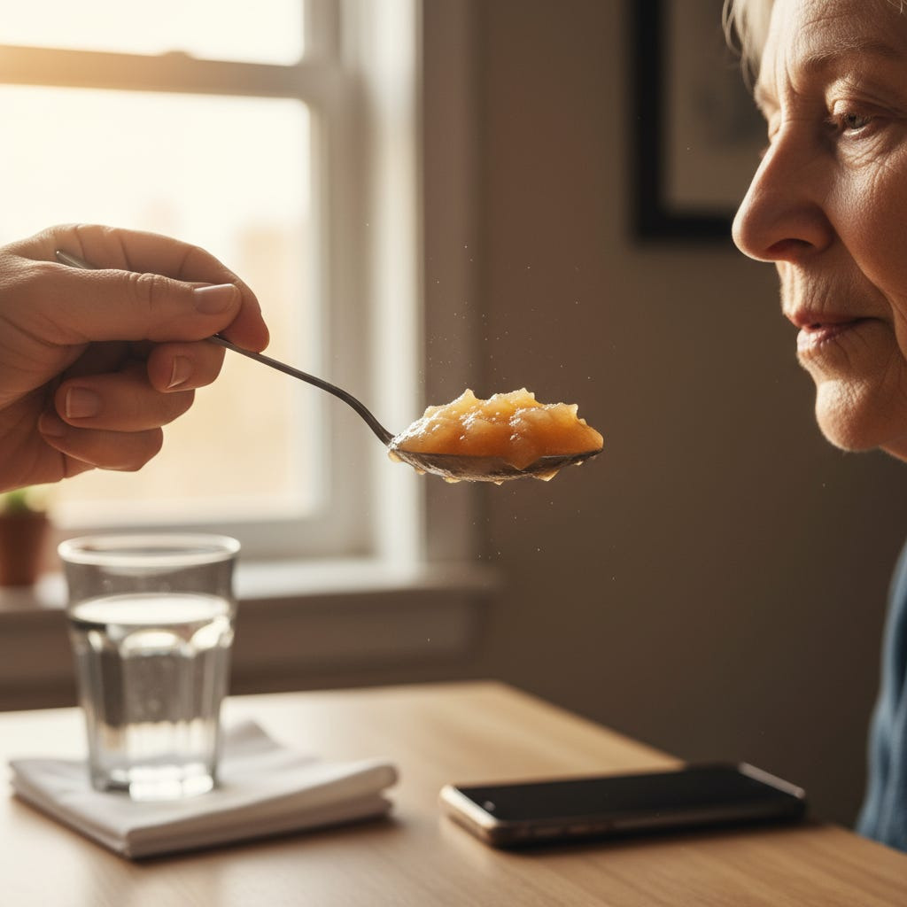 It’s 3:47 in the afternoon, and my friend Sarah is feeding her mother applesauce. The spoon lifts slowly, carefully, almost rhythmically. Sarah watches her mother’s face for signs of readiness. There are pauses between motions, little moments of waiting that cannot be hurried. One spoon. Wait. Another spoon. Wait. The afternoon light through the kitchen window hasn’t moved. Her phone buzzes on the counter seven times in the last four minutes, but she doesn’t look.