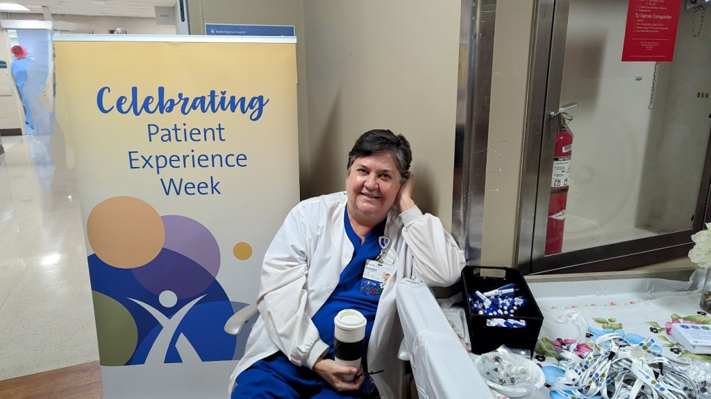 Margie began her career at Duke University Hospital in 1984. Over four decades, she moved through roles spanning bedside care and leadership—staff nurse, clinical nurse specialist in pain management, nurse educator, director of Women’s Services, and, ultimately, a leader of Duke Regional’s Patient Experience journey. But what stood out to me was not the breadth of her titles; it was how little distance she placed between herself and the people those titles served.